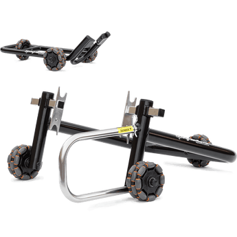 Single-sided Rear Stand: Fits bikes with a single-sided swingarm and a large central hollow in the rear wheel hub. Interchangeable spindles easily adapted for different brands of bike: BMW, Ducati, MV Agusta, Honda, KTM, Triumph.
