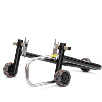 Single-sided Rear Stand: Fits bikes with a single-sided swingarm and a large central hollow in the rear wheel hub. Interchangeable spindles easily adapted for different brands of bike: BMW, Ducati, MV Agusta, Honda, KTM, Triumph.
