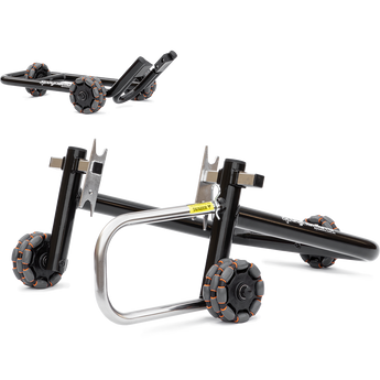 Single-sided Rear Stand: Fits bikes with a single-sided swingarm and a large central hollow in the rear wheel hub. Interchangeable spindles easily adapted for different brands of bike: BMW, Ducati, MV Agusta, Honda, KTM, Triumph.